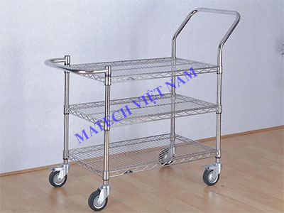 Xe đẩy hai tầng phòng sạch mặt bàn đột lỗ